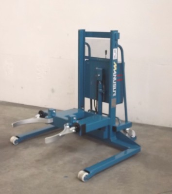 Gerbeur semi-électrique équipé d'une pince à fûts réglable, pour fûts plastiques de 200/220 litres.